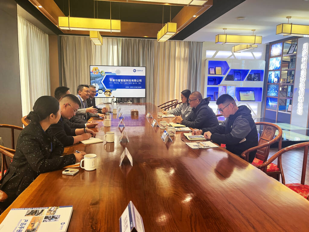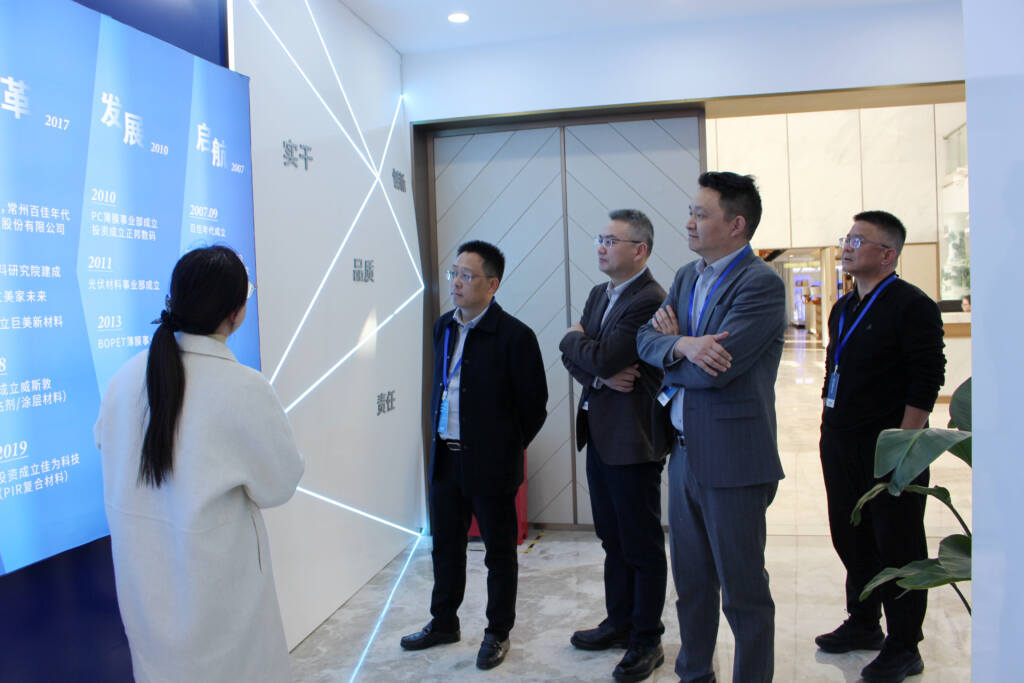 11 月 25 日,安徽功堂智能科技有限公司(以下简称“功堂科技”)董事长刘志莘、总裁陈强、副总经理张延虎、销售总监吴迪等一众公司高层,在广德开发区招商局范如意局长的陪同下,赴百兴集团旗下子公司常州百佳年代薄膜科技股份有限公司(以下简称 “百佳年代”)参观交流。