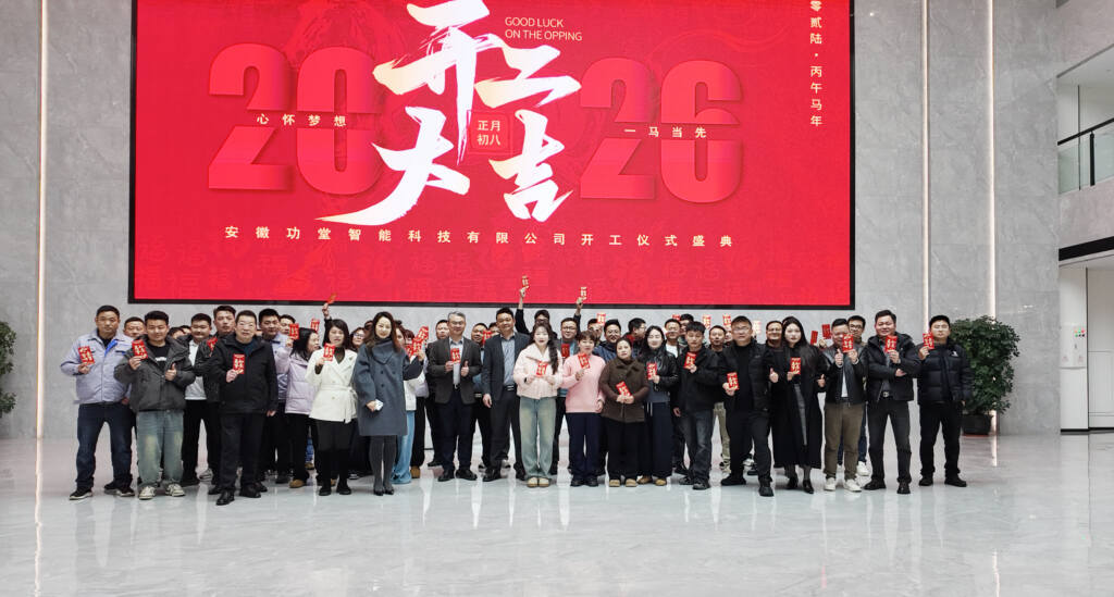 正月初八,安徽功堂智能科技有限公司开工仪式在厂区隆重举行,全体同仁齐聚一堂,以饱满的热情、昂扬的姿态,共迎新春开工吉日,共启2026丙午马年新征程!